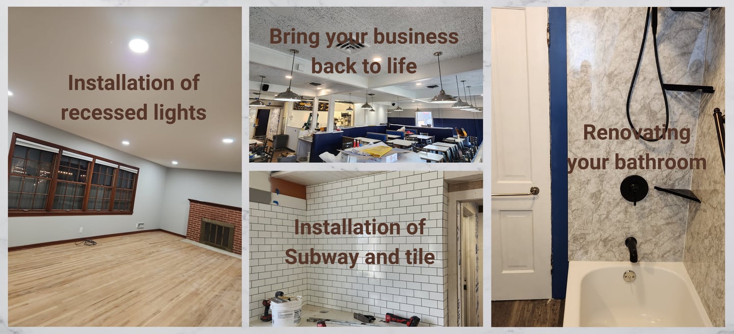 Demolition, plumbing, electrical work, exhaust fans, installation of bathtubs and showers, tiles, toilets, sinks, painting, glass doors, and much more!